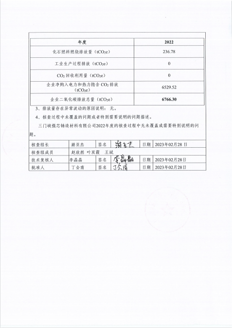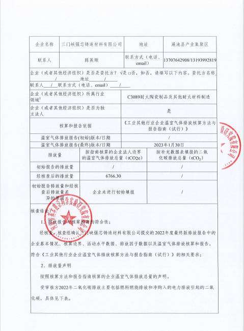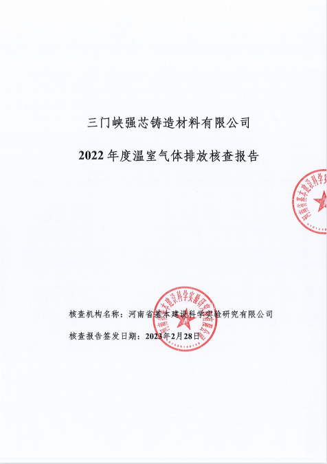 三門峽強(qiáng)芯鑄造材料有限公司溫室氣體排放核查報(bào)告公示